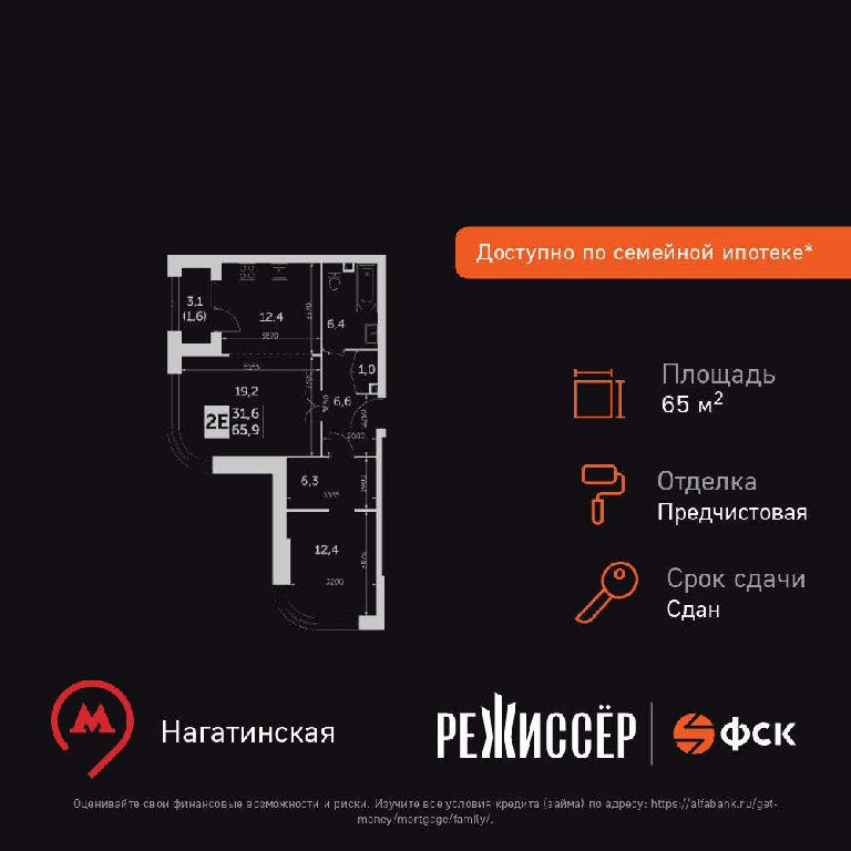 Жилая площадь 31.6 м2, кухня 12.4 кв. м, ремонта нет, окна выходят на улицу.
