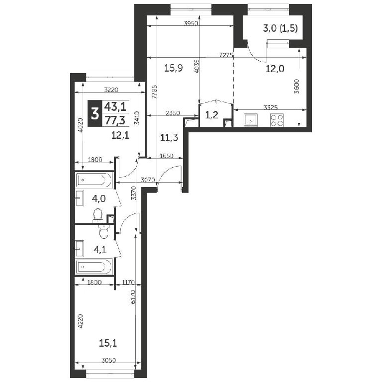 Продается 3-комн. квартира, площадью 77.3 м2.