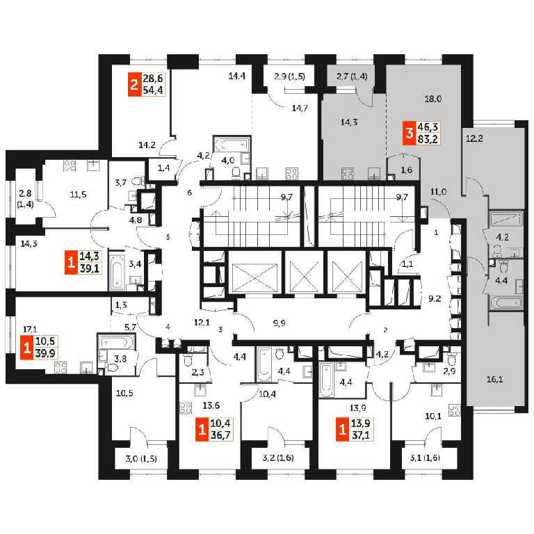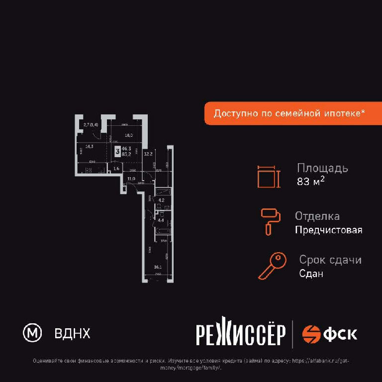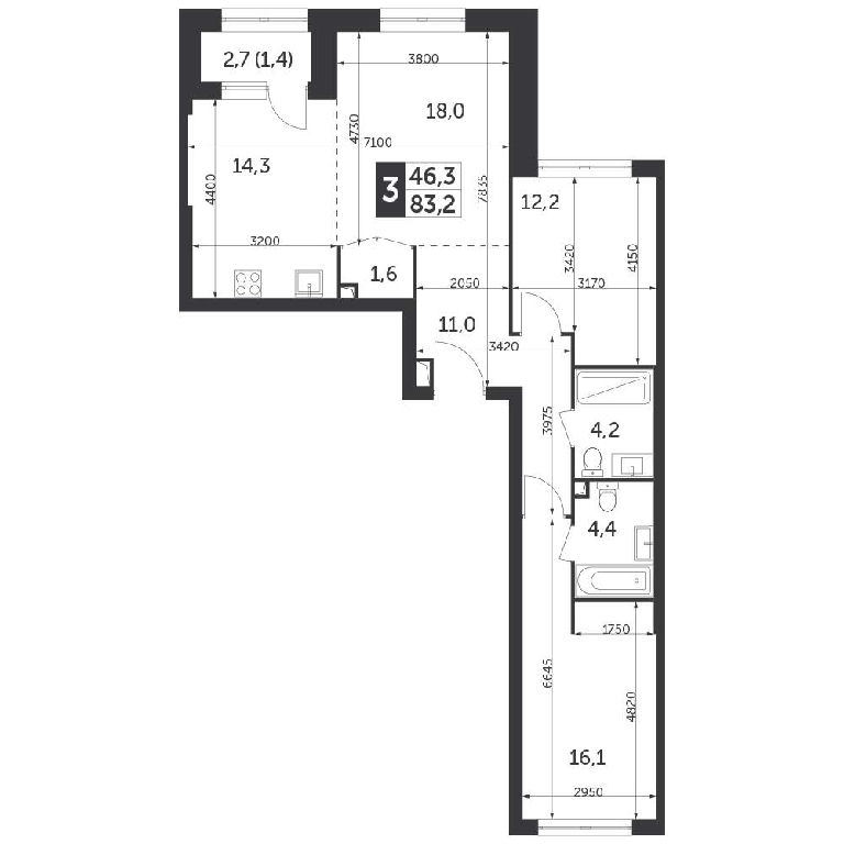 Общая: 83,2 м2