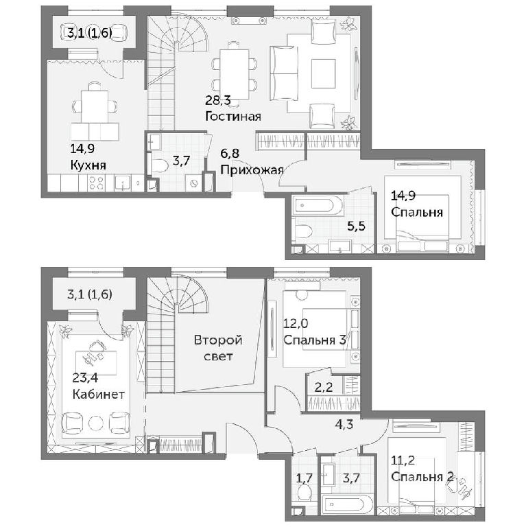 Кухня: 14,9 м2