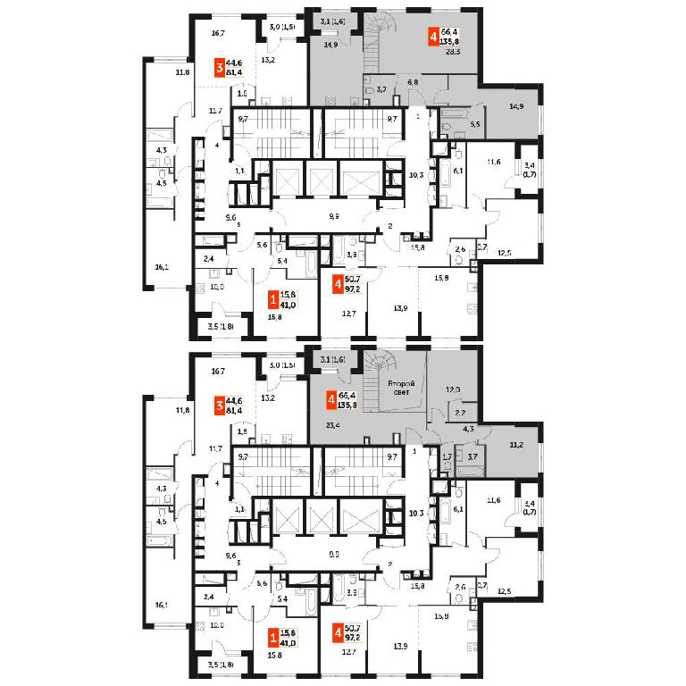 Общая: 135,8 м2